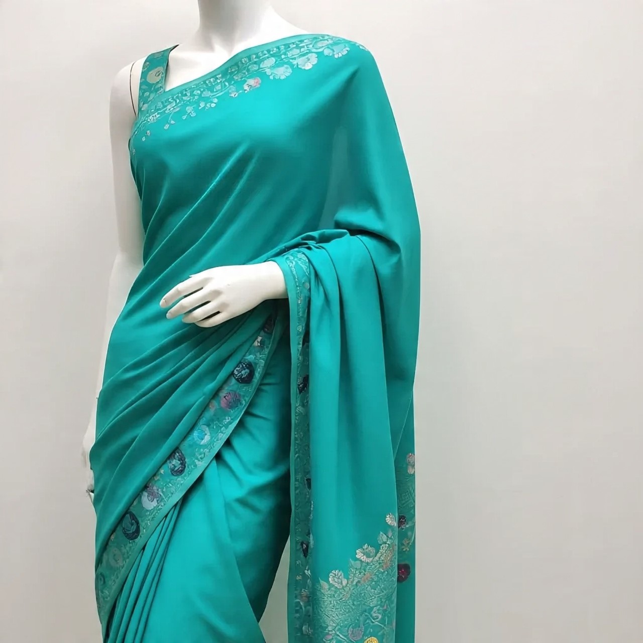 Be the first to review “Teal Printed Crepe Saree” Cancel reply